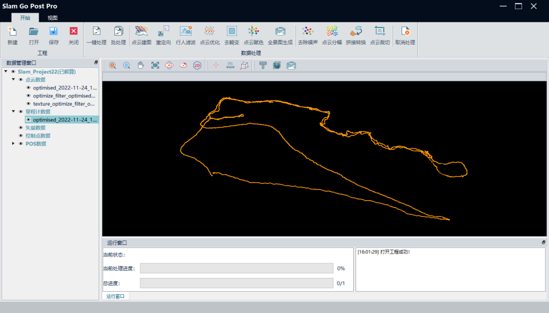 The post-processing software SLAM GO POST Pro was used to output the original point cloud, and the point cloud was optimized to obtain a high-precision point cloud, which took 16 minutes.