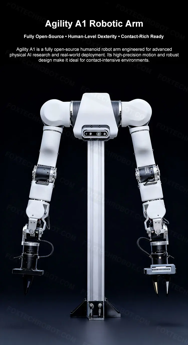 Agility A1 is a fully open-source humanoid robot arm designed for advanced physical-AI research and real-world deployment.