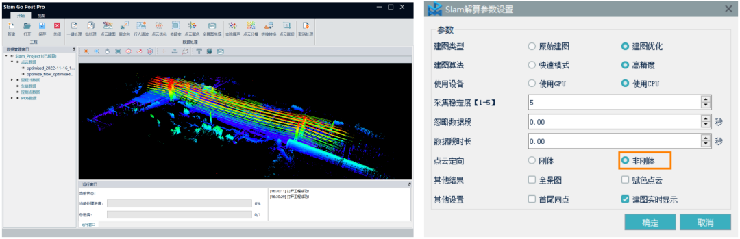 Use the PC-side supporting software SLAM GO POST Pro to solve the point cloud data with one-click non-rigid transformation based on the RTK trajectory. Non-rigid transformation can not only use the true value of coordinates to eliminate the influence of accumulated errors and improve the accuracy of point clouds, but also directly incorporate point clouds into the absolute coordinate system, eliminating the need for subsequent point cloud registration steps, and accurately merging point clouds in different scanning sequences to meet Power inspection point cloud result requirements.