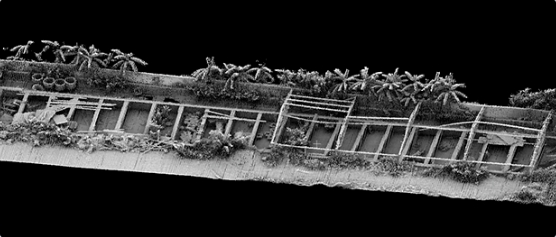 In the mountainous areas of Guangdong in summer, vegetation can still be easily penetrated. The following figure shows the penetration performance, point cloud data before and after filtering, and the results.