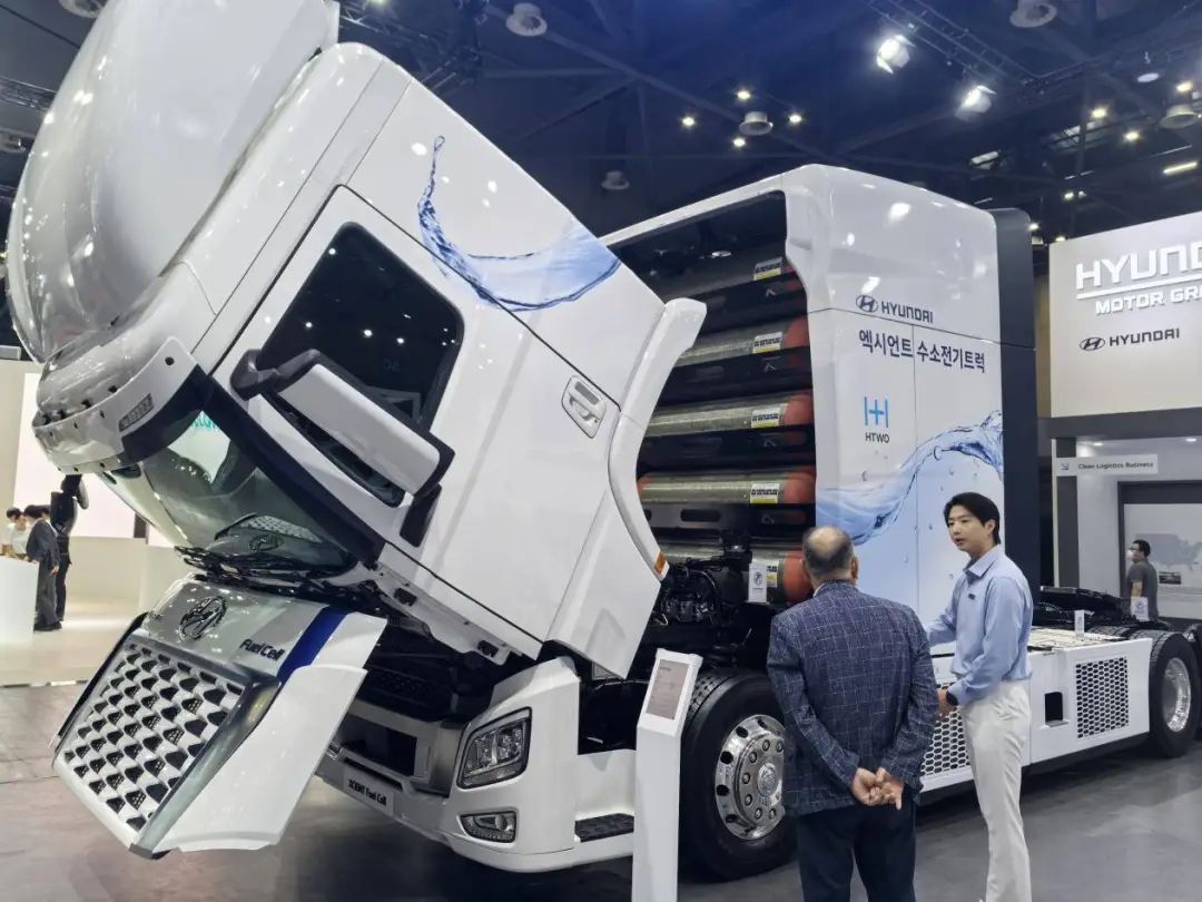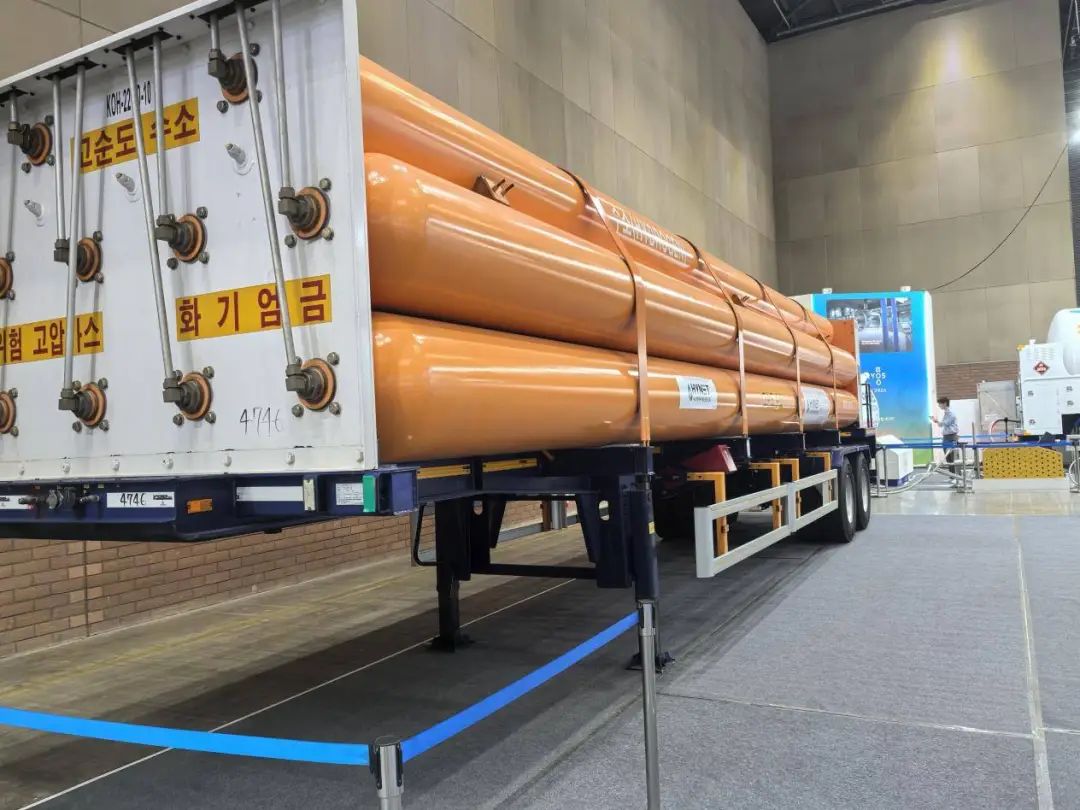 In another exhibition area, Hydrogen Energy Network (HYNET), the largest hydrogen refueling station operator in South Korea, exhibited hydrogen refueling stations and tubular trailers for transporting gaseous hydrogen. It is understood that they operate a total of 55 hydrogen refueling stations across the country, and their safety has been confirmed. The head of HYNET said that Hyundai Motor Company's global hydrogen car NEXO can be refueled in 5 minutes through their hydrogen refueling stations, with a range of 600 kilometers. The range is at a normal level in the industry, but it is much faster than electric vehicles. After all, it usually takes about 2 or 3 hours to charge an electric car for the same mileage. It is reported that the current sales of NEXO are tens of thousands of units. In the first half of next year, Hyundai Motor Group will launch the second-generation hydrogen energy car, with a range of 800 kilometers.