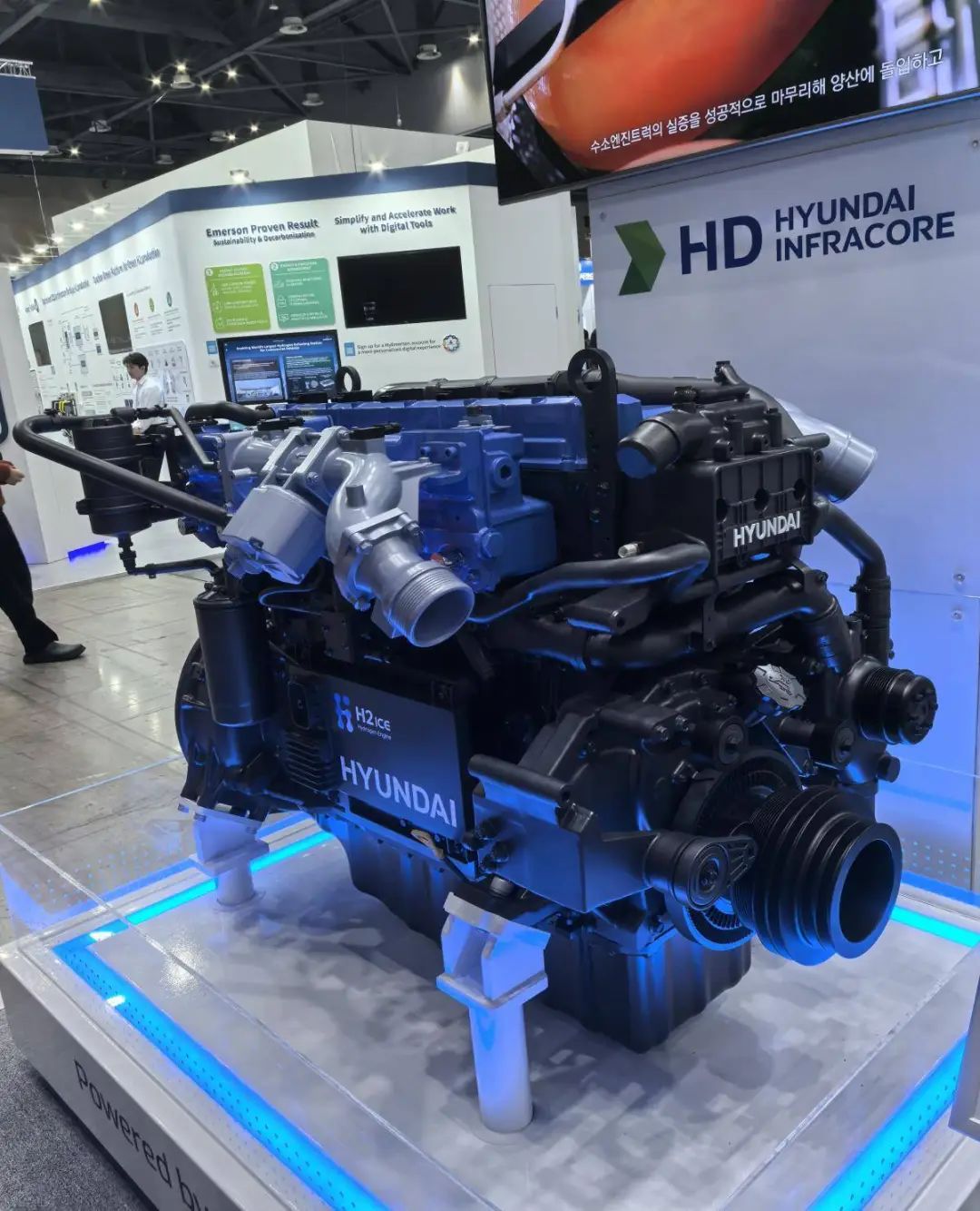 Hyundai Engineering Machinery Co., Ltd., which is participating in the exhibition for the first time this year, has launched a hydrogen fuel-generated power engine that can be installed in commercial trucks. However, it is currently in the trial operation stage and is expected to start full-scale mass production next year.