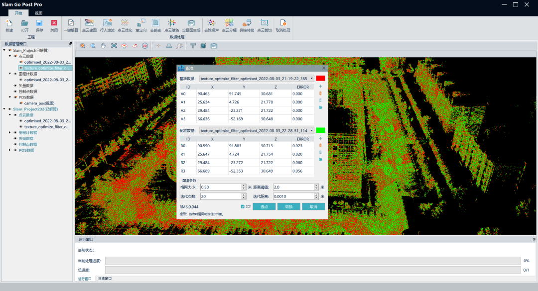 The SLAM GO POST Pro data management window can effectively and clearly manage multi-project data, and solve the problem of management organization and collaborative processing of data scanned multiple times a day by users; it supports two calculation modes of one-key calculation and step-by-step processing, and users can Choose the best solution mode according to your needs.